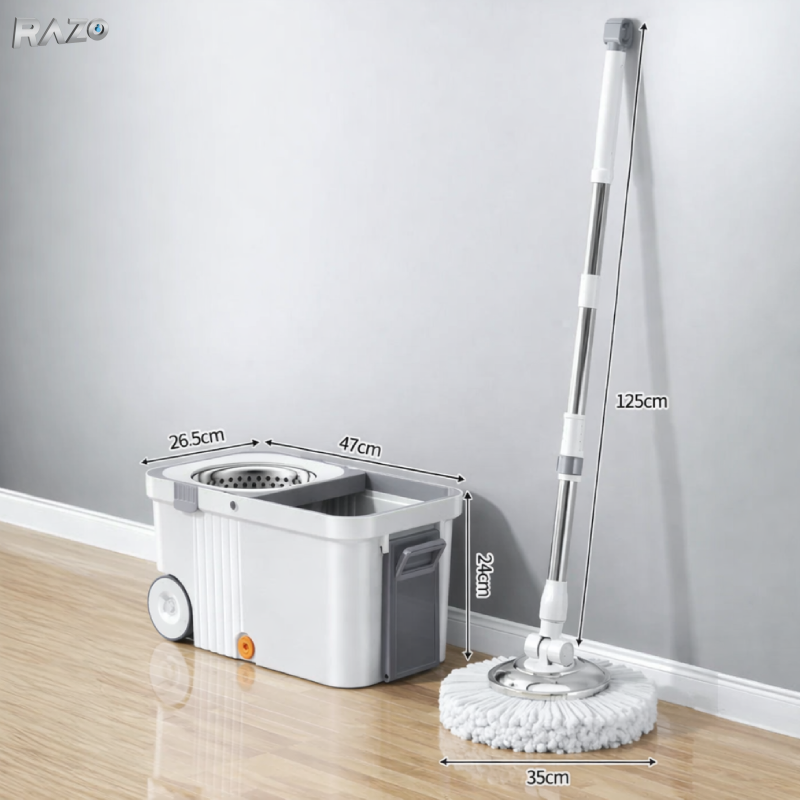 Fie că faci curățenie zilnică sau mai detaliată, setul de mop rotativ este partenerul perfect pentru a-ți menține casa curată și strălucitoare.