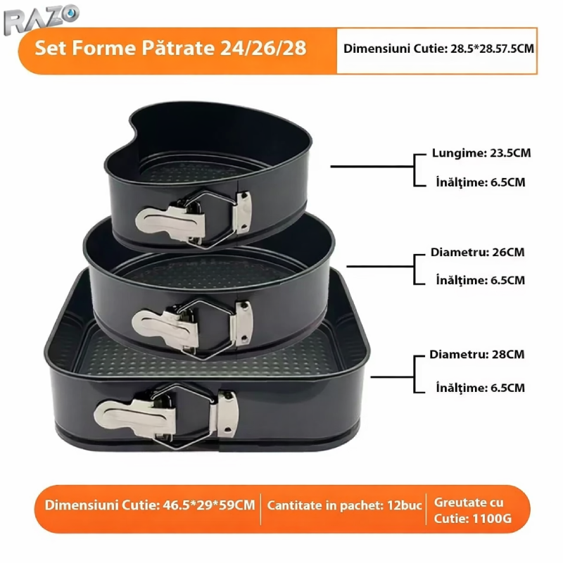 Pregateste deserturi perfecte cu acest set practic de 3 forme pentru prajituri si torturi. Ideale pentru utilizare acasa sau in bucatarie profesionala, tavile asigura coacere uniforma si scoatere usoara a desertului fara a-i afecta forma.