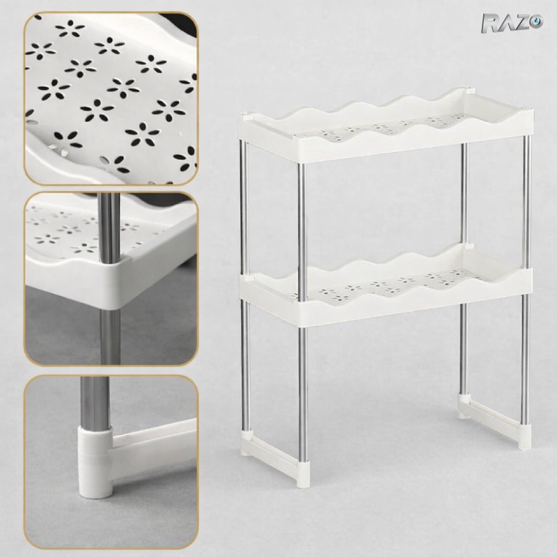 Optimizeaza spatiul din bucatarie cu suportul Razo cu 2 etajere, ideal pentru amplasarea cuptorului cu microunde si organizarea accesoriilor sau alimentelor. Designul compact si rezistent permite economisirea spatiului pe blat, oferind in acelasi timp stabilitate si functionalitate.