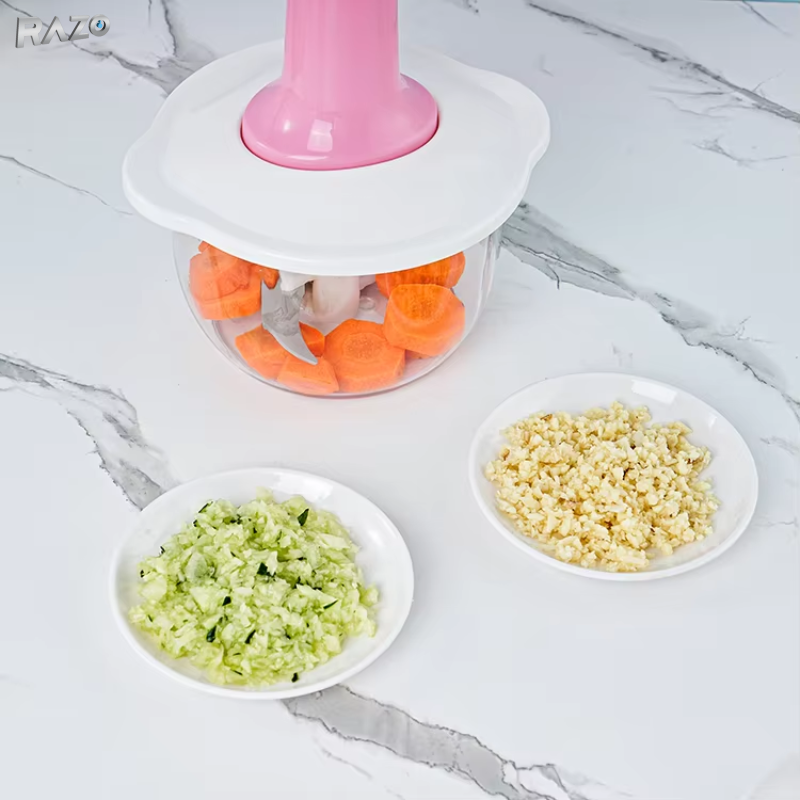 Tocatorul manual multifunctional de 2L este un ajutor practic in bucatarie, ideal pentru maruntirea rapida a legumelor, fructelor, carnii sau preparatelor pentru bebelusi. Functioneaza prin sistem de apasare, fiind usor de utilizat si eficient.