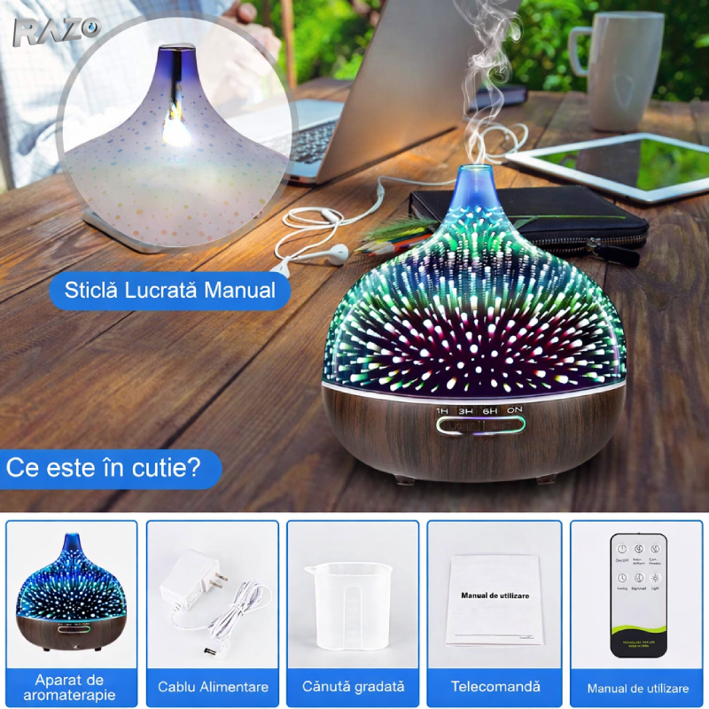 Difuzorul aroma 3D cu ultrasunete este alegerea perfecta pentru a crea un spatiu relaxant, parfumat si confortabil in orice locuinta.
