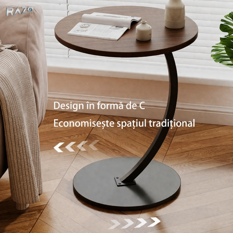 Blatul rotund ofera suficient spatiu pentru cafea, carti sau obiecte decorative, iar structura metalica asigura stabilitate si durabilitate pe termen lung.