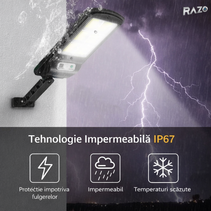 Lampa solara stradala cu telecomanda este solutia ideala pentru iluminat exterior eficient si economic. Conceputa pentru a oferi luminozitate ridicata pe suprafete mari, aceasta lampa functioneaza complet pe baza de energie solara, fiind perfecta pentru curte, gradina, alei sau zone rezidentiale.