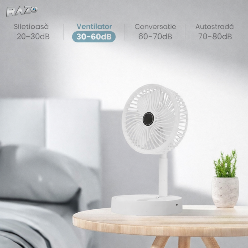 Alege ventilatorul pliabil Razo pentru racire eficienta, confort si mobilitate oriunde ai nevoie.