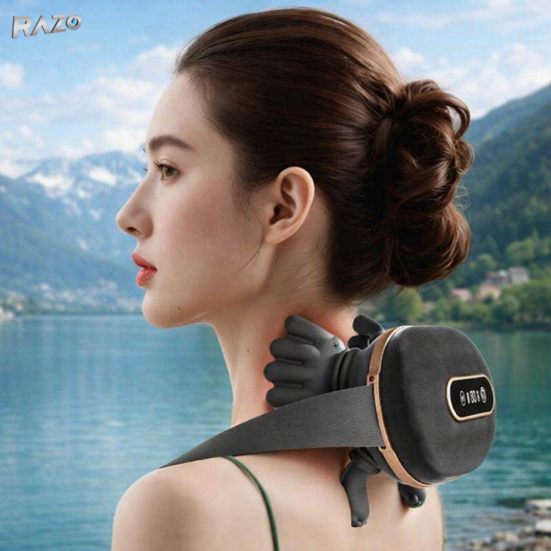 Aparat de masaj RAZO pentru gat, umeri, Caldura bionica reglabila, Portabil, Fara fir, Masaj profund, Autonomie 70 min, Negru