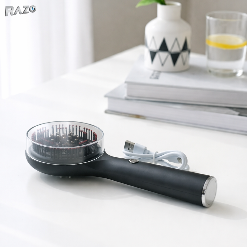 Ofera scalpului tau relaxare si ingrijire profesionala direct la tine acasa cu peria electrica pentru masajul scalpului. Dispozitivul combina vibratiile delicate, nodurile de masaj si terapia cu lumina LED rosie pentru o experienta completa de stimulare si relaxare.