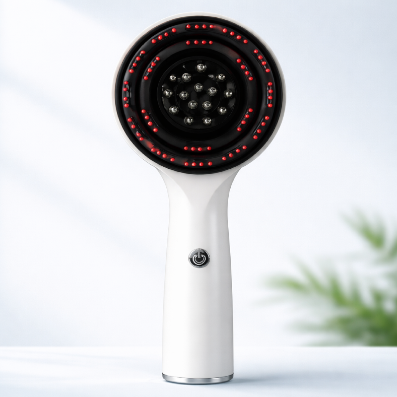 Ofera scalpului tau relaxare si ingrijire profesionala direct la tine acasa cu peria electrica pentru masajul scalpului. Dispozitivul combina vibratiile delicate, nodurile de masaj si terapia cu lumina LED rosie pentru o experienta completa de stimulare si relaxare.