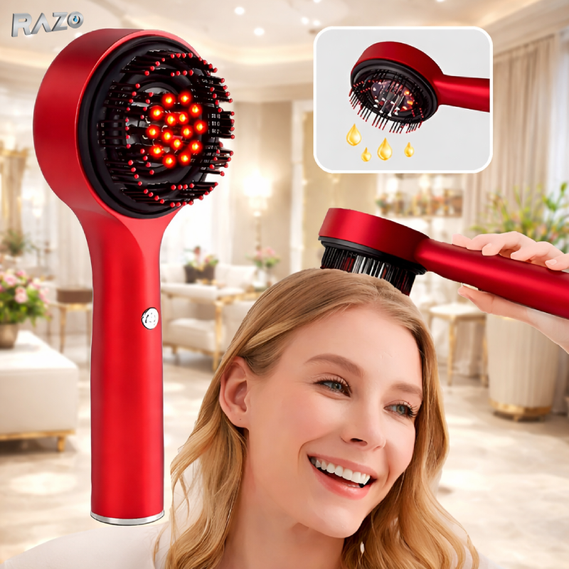 Ofera scalpului tau relaxare si ingrijire profesionala direct la tine acasa cu peria electrica pentru masajul scalpului. Dispozitivul combina vibratiile delicate, nodurile de masaj si terapia cu lumina LED rosie pentru o experienta completa de stimulare si relaxare.