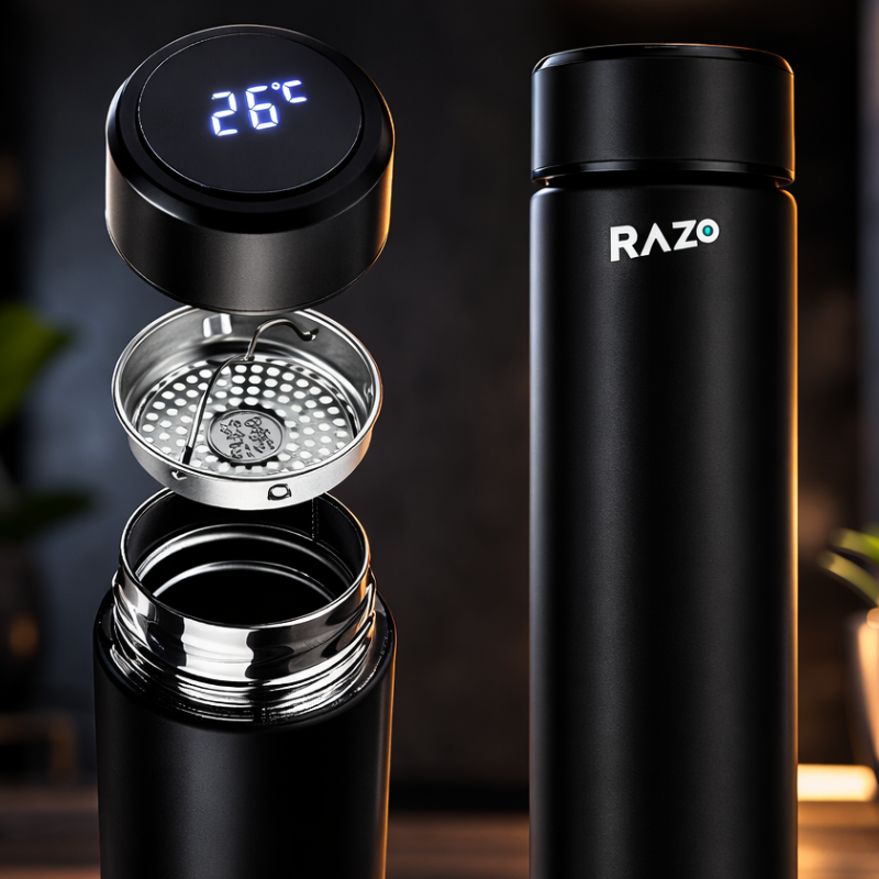 Termos RAZO cu LED si Afisaj Temperatura – Cana Termos Inteligenta 500 ml, Etansa, din Inox Alimentar